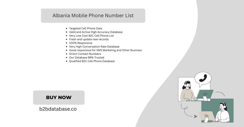 Updated and verified data is essential for modern marketing success. Our Albania list meets that standard with 99% valid entries. Additionally, Best B2B Sales Leads Database runs regular checks on all contacts. This removes inactive, fake, or irrelevant numbers from the list. So, your campaigns reach real people—no wasted calls or texts. Therefore, your business enjoys more responses and greater communication efficiency. Reliable data is key for both B2B and B2C campaigns. You can trust every number to be ready for outreach. Choose Best B2B Sales Leads Database for quality mobile contacts. Use our updated Albania list to drive successful campaigns today.Is Albania Mobile Phone Number List Updated By 2025?
