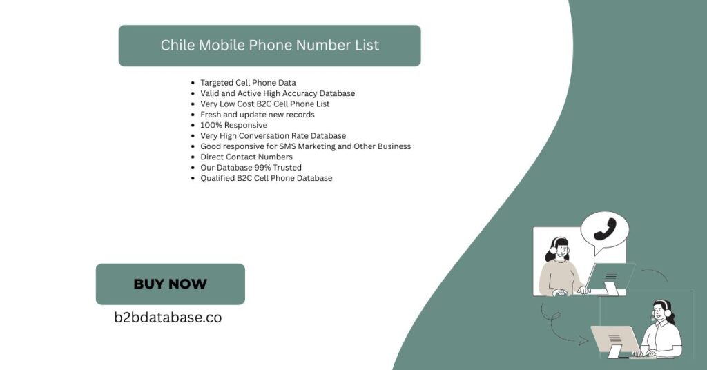 A Chile number list is extremely useful for digital marketing. Best B2B Sales Leads Database provides verified leads for better targeting. Moreover, marketers can launch SMS, voice, or WhatsApp campaigns easily. Targeted outreach improves engagement and message delivery rates quickly. As a result, marketing becomes cost-effective and highly responsive. You reach only real users who can become loyal customers. Additionally, our lists support custom filters and business-friendly formats. They fit well with CRM, email tools, or mobile platforms. Therefore, Best B2B Sales Leads Database enhances every step of marketing. Use our Chile list to grow leads, traffic, and revenue.