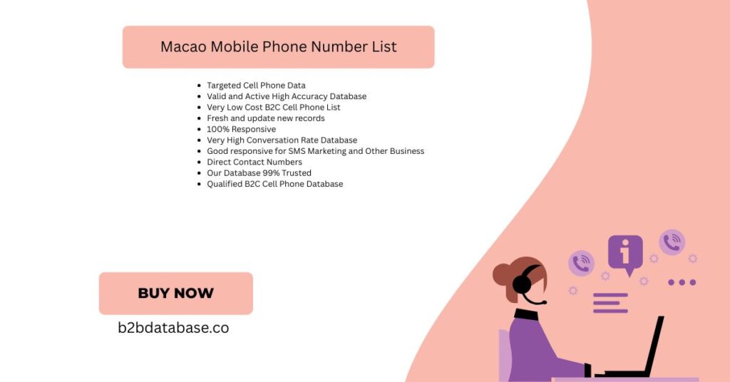 A Macao phone list is crucial for targeted and effective marketing. Best B2B Sales Leads Database offers data suited for multiple industries. Moreover, mobile communication has better engagement rates than other marketing channels. Direct SMS and calls increase brand awareness and customer loyalty faster. That’s why, companies rely on verified lists for better campaign success. You can customize messages based on customer behavior and preferences. Tracking metrics becomes easier with accurate phone data and outreach tools. Campaigns become more efficient, saving time and reducing marketing expenses. Therefore, our Macao mobile list is highly useful for your marketing. Boost your outreach with targeted contacts and grow your customer base.