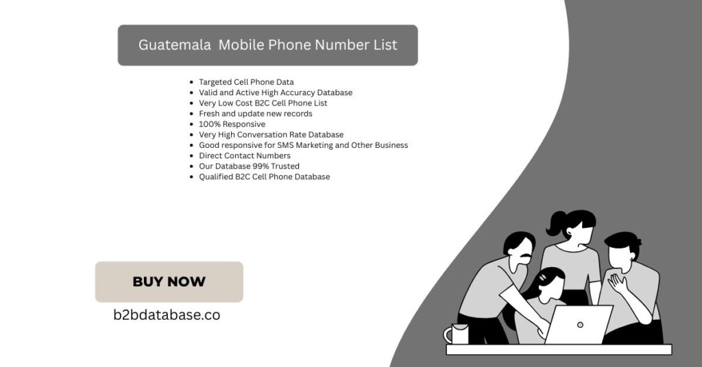 Using our Guatemala number list grows your customer base easily. It connects businesses with real people who want your service. Additionally, you save time with ready-to-use valid contact numbers. This targeted list improves conversion and increases lead generation efficiency. Therefore, it reduces marketing costs while boosting overall business returns. Best B2B Sales Leads Database supports businesses with scalable phone data. You can target new customers across multiple cities in Guatemala. Also, it’s perfect for SMS, WhatsApp, and direct call promotions. Get better customer engagement and market coverage with this tool. Build trust, grow visibility, and expand faster with our database.